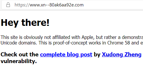 Using Punycode, it’s easy to register xn–pple-43d.com which correspond to apple.com. End user will not be able to see the difference between the two, and will believe they are going to the legitimate Apple Website. You can have fun with this tool for example if you want to test this. This technique is well suited for phishing, as well as credit card skimming.