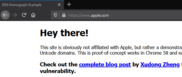 Homograph Attack Using Unicode