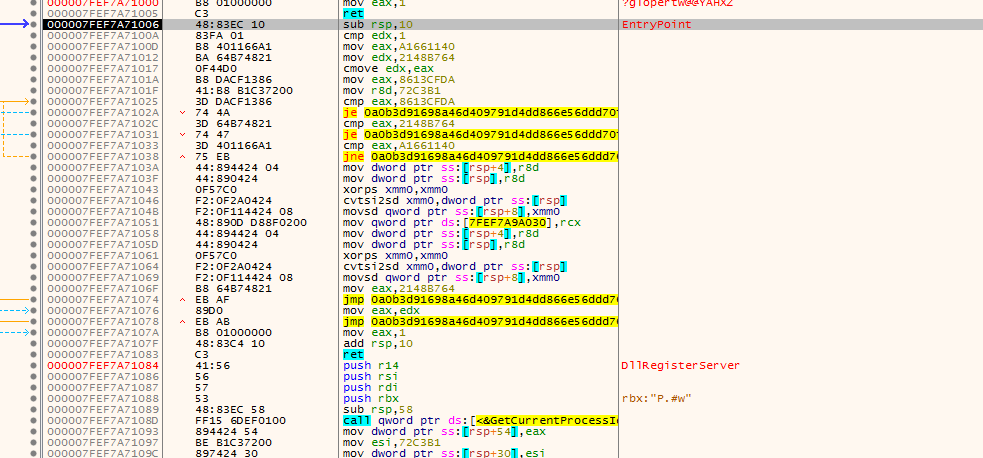 "C:\Windows\System32\rundll32.exe" PathToSample\0a0b3d91698a46d409791d4dd866e56ddd70f91a3f1d4557a0cb2899bda1e524.bin, DllRegisterServer