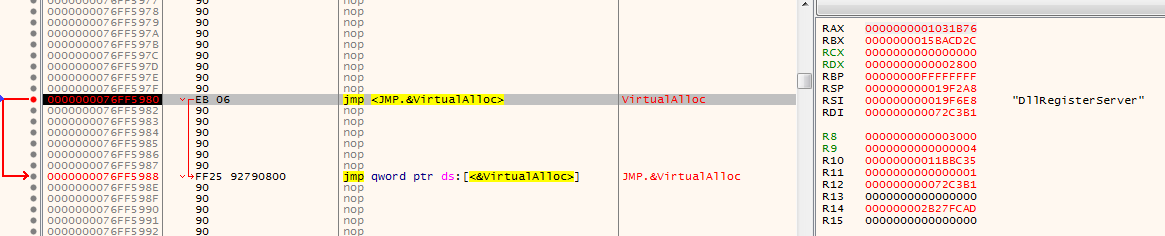 We can now set as many breakpoints that we want. For unpacking this sample, only VirtualAlloc is needed, but do not hesitate to add breakpoints on CreateThread or GetProcAddress if you want to go deeper.