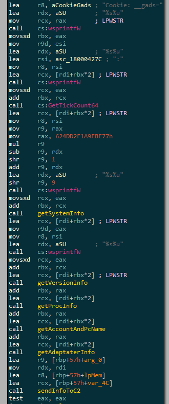 You can also got the domain name easily by setting a breakpoint on “WinHttpConnect” and looking at the RDX register value