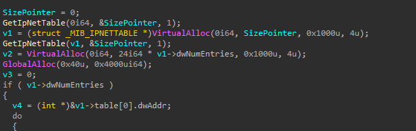 Ryuk will also scan the ARP table in order to find any files or folders in remote hosts. (T1016)