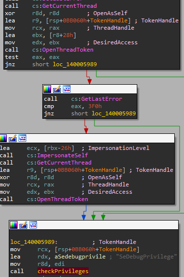In order to do so, Ryuk will open it current thread and retrieve the Thread Token.