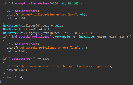 Ryuk will check for two privileges :